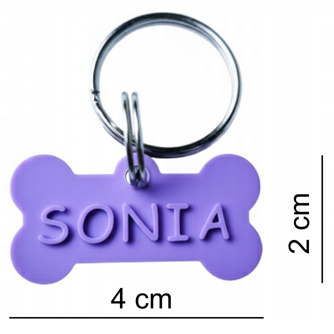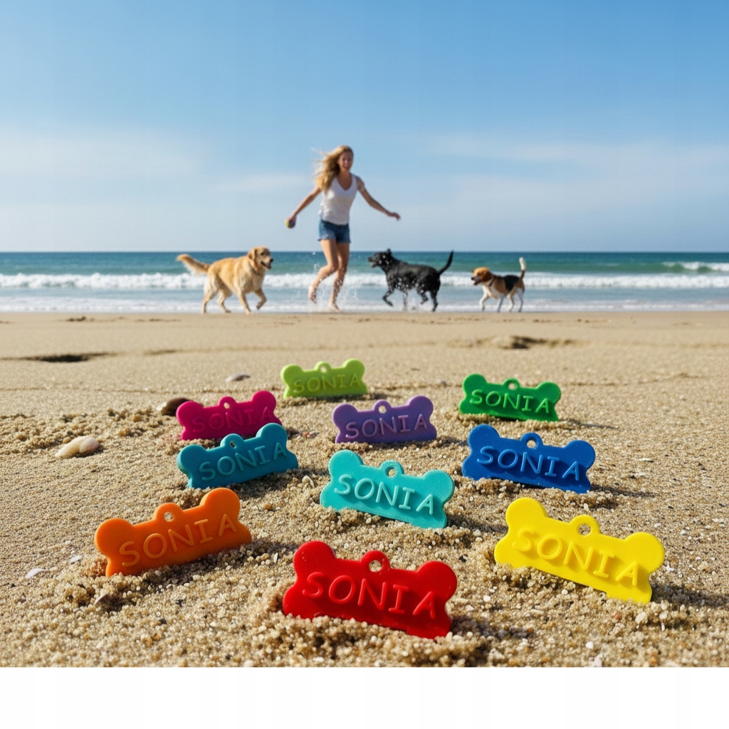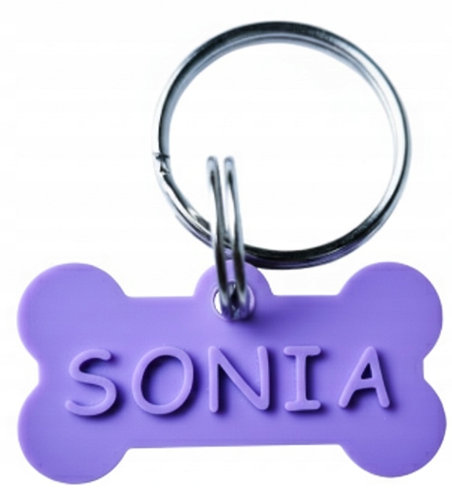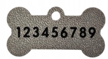 Imię psa jest wypukłe natomiast nr telefonu drukujemy w innym wyróżniającym się kolorze.