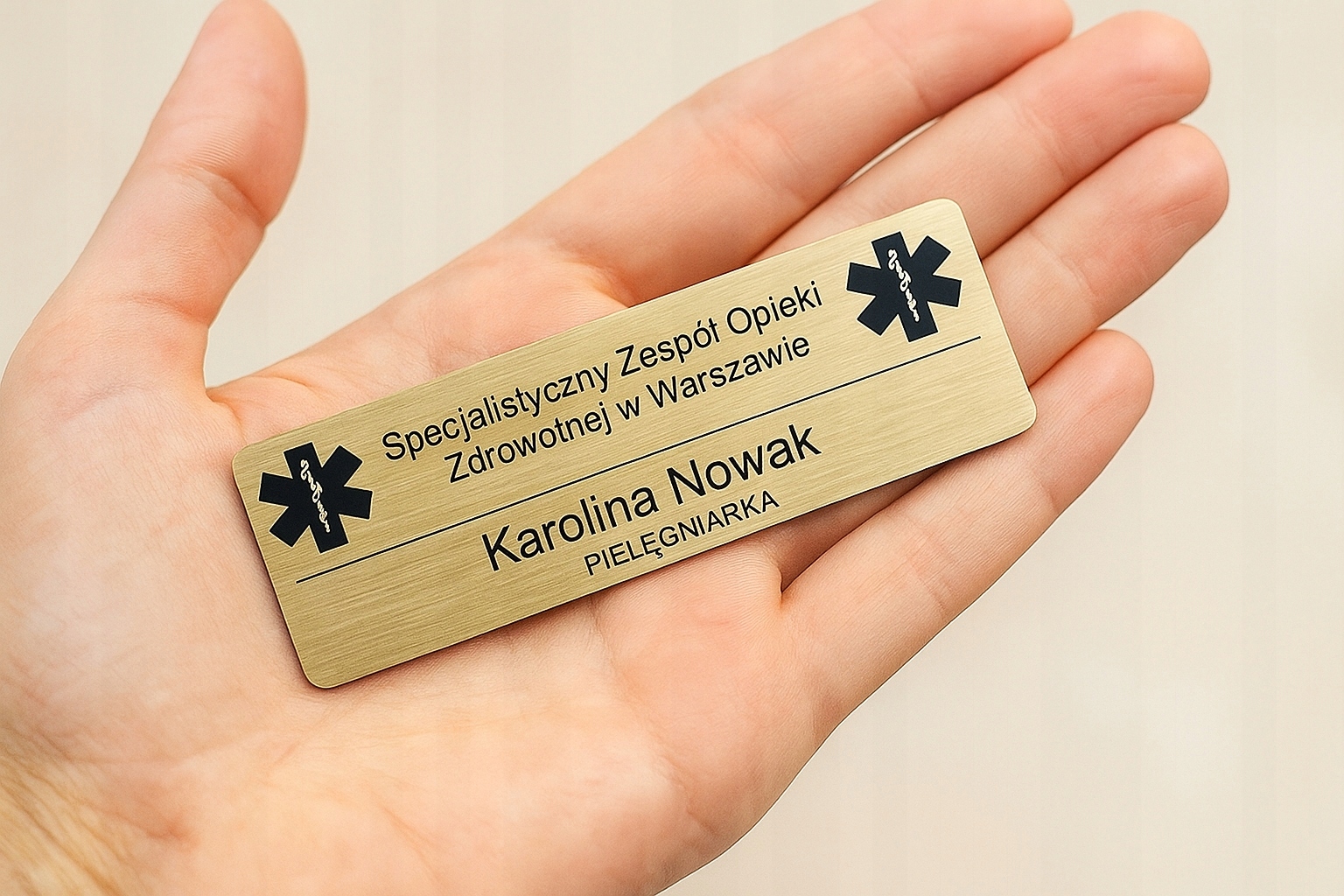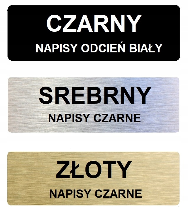 • Trzy kolory identyfikatorów do wyboru – złoty (tekst czarny),srebrny (tekst czarny), czarny (tekst odcień białego).