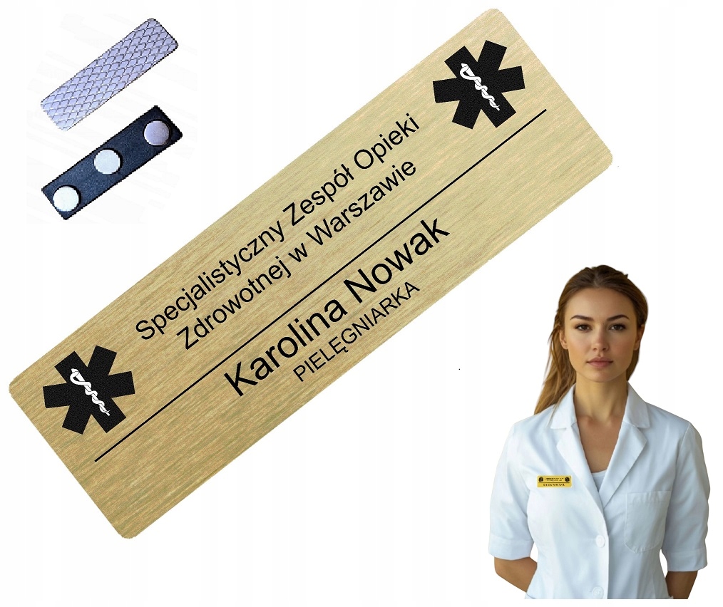 Identyfikator imienny personalny + grawer laserowy + nieinwazyjna bardzo mocna zapinka magnetyczna w cenie.