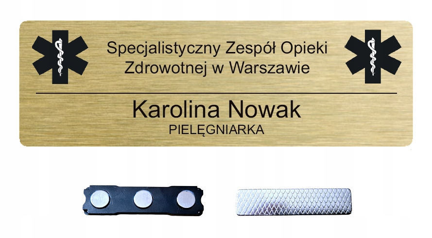 Identyfikator imienny personalny + grawer laserowy + nieinwazyjna bardzo mocna zapinka magnetyczna w cenie.