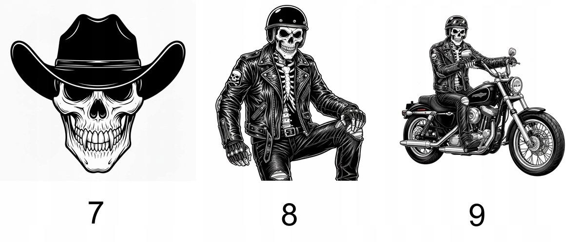 Wybierz nr grafiki oraz podaj informację czy chcesz otrzymać grafikę na czarną - ciemną czy białą - jasną koszulkę: